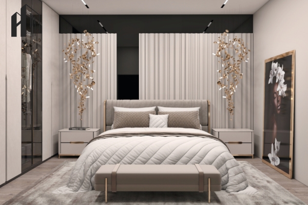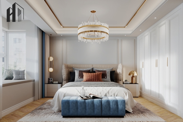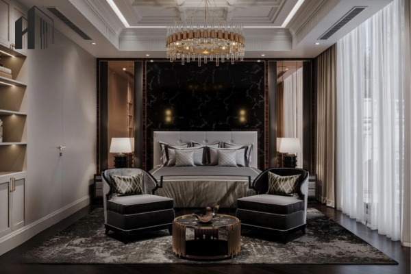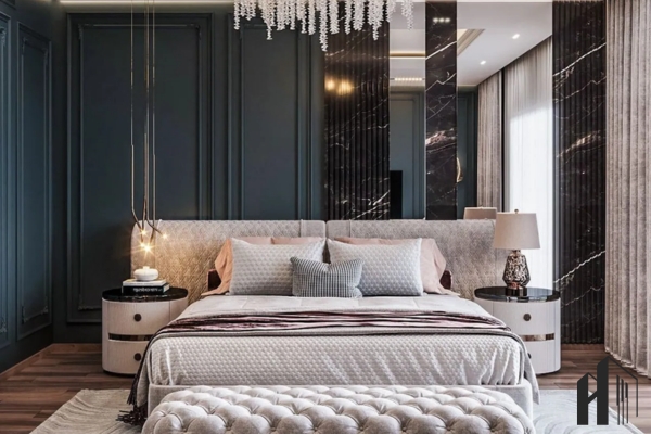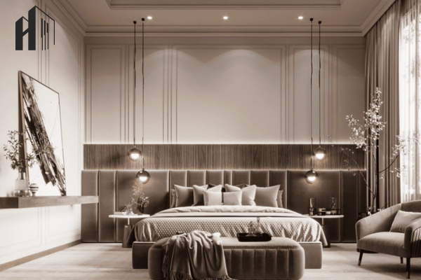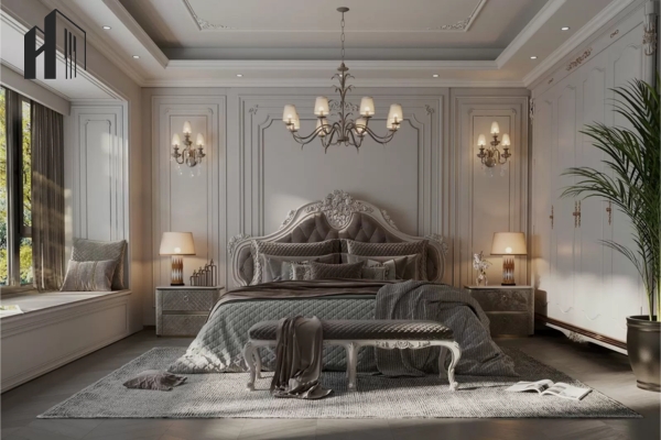 Luxury pha cổ điển – Sử dụng đường phào nhẹ và màu sắc trung tính cao cấp.