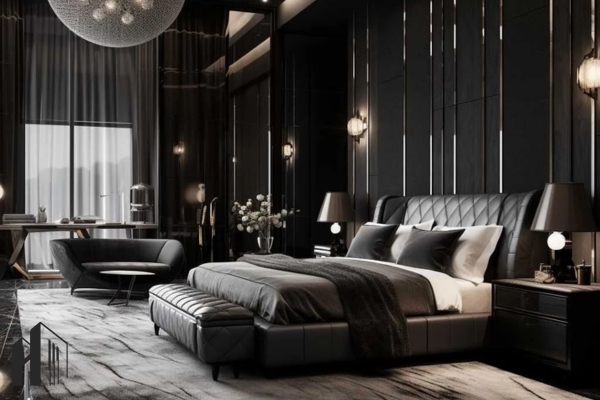Căn hộ luxury đen trắng – Không gian đẳng cấp với tone đen chủ đạo, điểm nhấn kim loại.