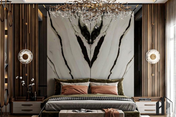 Luxury ánh kim – Sử dụng các chi tiết viền vàng đồng và đá marble sang trọng.