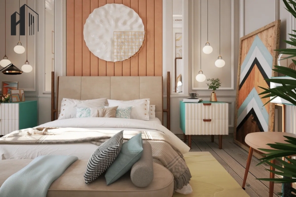 Thiết kế màu pastel Bắc Âu – Sử dụng các gam hồng nhạt, xanh bạc hà cho cảm giác dễ chịu.