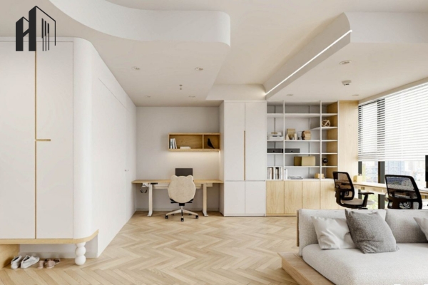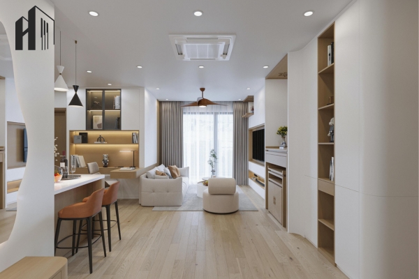Thiết kế Bắc Âu sắc trắng chủ đạo – Căn hộ đón sáng tự nhiên với nội thất gỗ sáng, tạo cảm giác nhẹ nhàng và thư giãn.